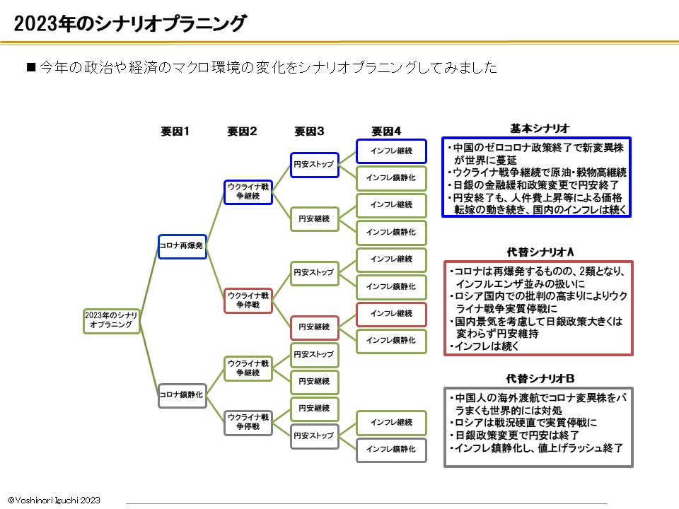 中期経営計画策定でお勧めしているシナリオプラニングを、2023年日本はこうなる風に